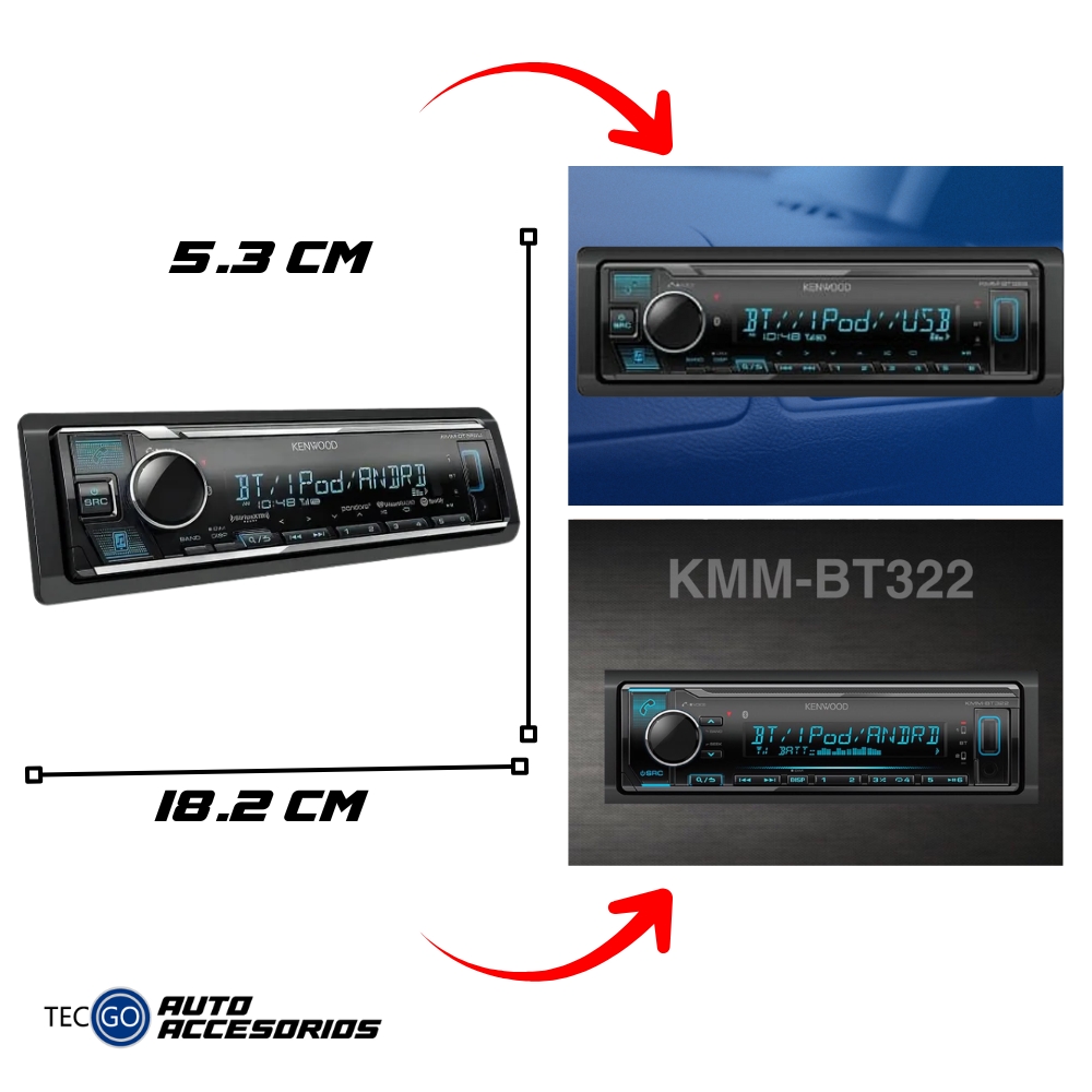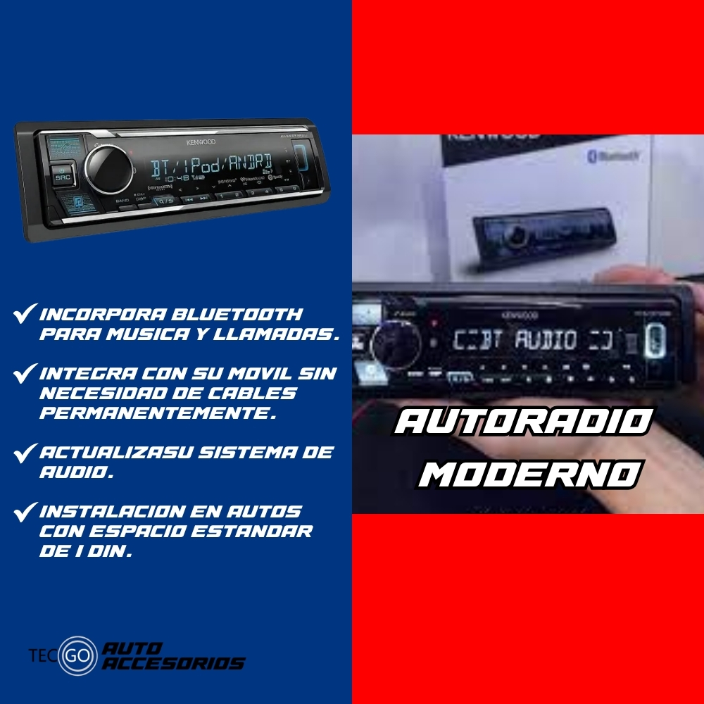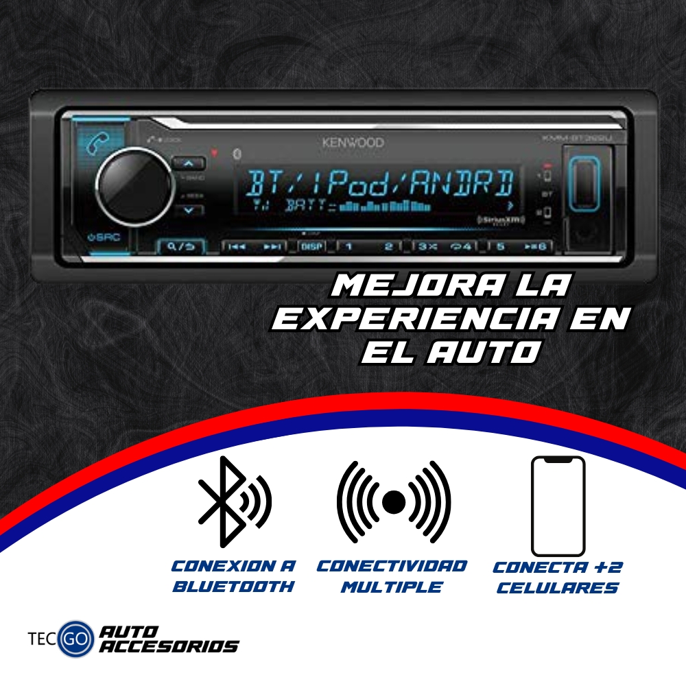 El Kenwood KMM-BT322 es un autoradio digital diseñado para ofrecer un sonido nítido, potente y moderno. Su tecnología Bluetooth integrado permite realizar llamadas manos libres, reproducir música inalámbrica y conectar dos teléfonos al mismo tiempo.
